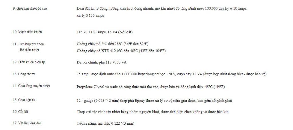 - Giới hạn nhiệt độ cao kép để bảo vệ quá nhiệt
