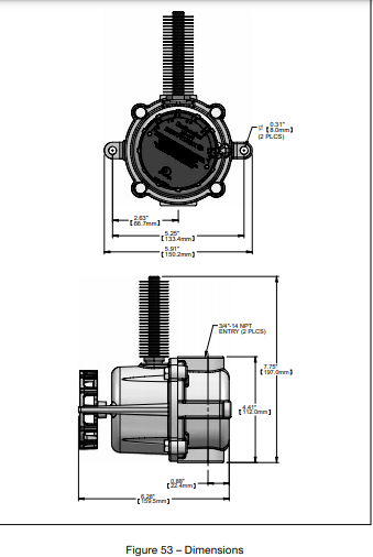 • Độ mở ống dẫn: ¾” – 14 NPT