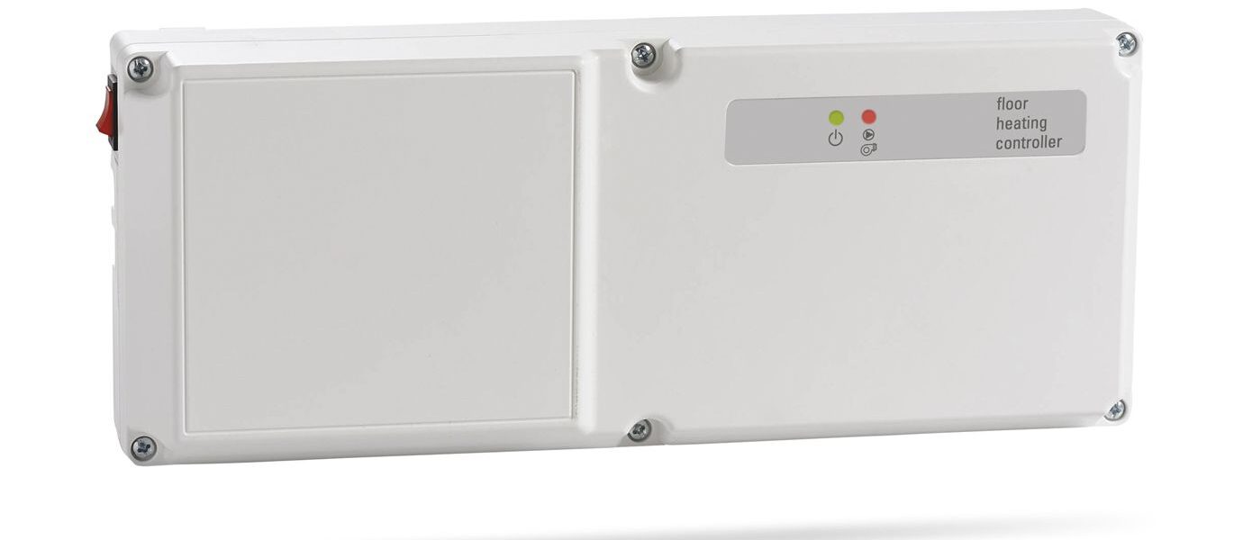 Electronic control for heating floor systems. The control offers the possibility to connect up to 8 (or 12) thermostats and 8 (or 12) actuators with selectable power supply between 230V~ or 24V~. 1 pump output is available + boiler interlock, an input for an external clock for the activation of the section of the actuators and thermostats.