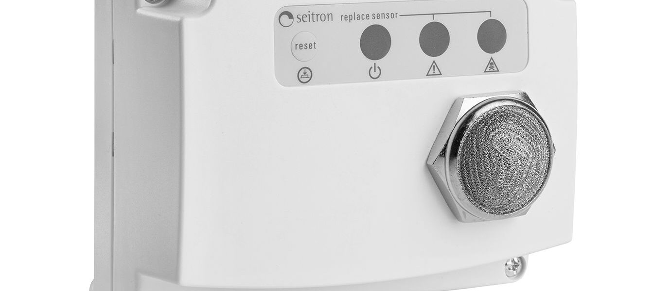Carbon monoxide detector for leakages with two relay outputs and internal sensor (ACCRIC0001 – Precalibarted CO Sensor). Test and reset button. IP40 case.
