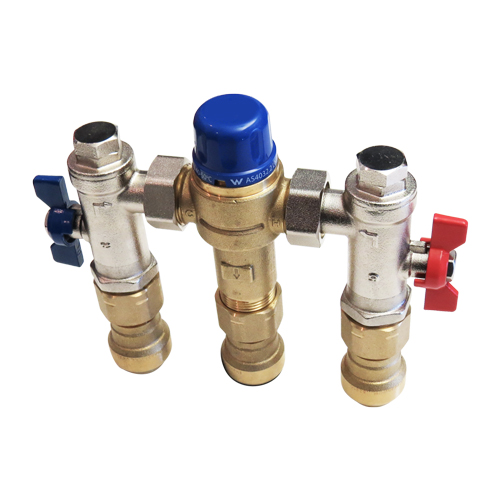 van hòa trộn nhiệt độ 4 trong 1 là cụm van điều hòa được chế tạo sẵn với các phụ kiện đầu vào tích hợp cho phép lắp đặt nhanh chóng và bảo trì van đơn giản hóa cho toàn bộ ngôi nhà, tòa nhà hoặc hệ thống.